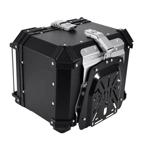 AMOPA 45L Motorcycle Tail Box Top Case – Scooter Universal Storage Trunk – Waterproof Aluminum Luggage Touring Box with Security Lock, Black