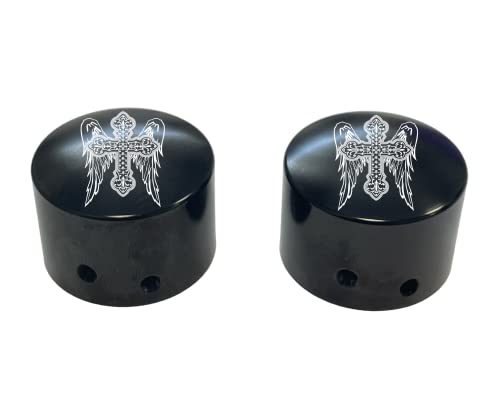 Angel Wings Cross Front Axle Cap Nut Covers Black in Color Compatible With Harley Davidson Touring Road King Road Glide Street Glide Ultra Dyna
