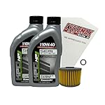 CYCLEMAX OIL CHANGE KIT INCLUDES: Two Kawasaki K61021-300-01Q KPO Semi Synthetic 10W40 Motorcycle Quarts of Oil, One Kawasaki 52010-1053 Oil Filter, One 10mm Drain Plug Crush Washer and a Convenient Disposable Funnel.