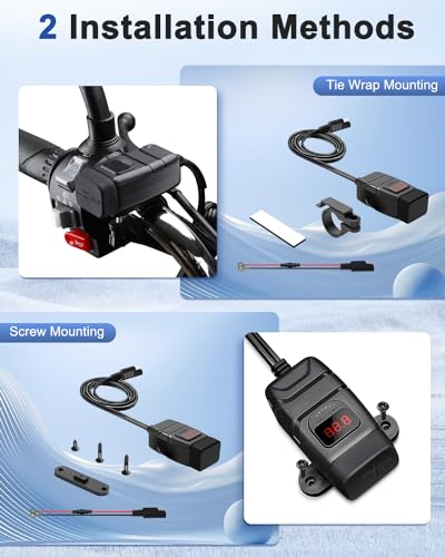 LED Voltmeter & ON/OFF Switch – The motorcycle charger is equipped with an independent switch button and an on/off switch, you’re going to know the health of the battery at the same time as driving. Monitories the battery and electrical system automatically and indicate the voltage on the screen, to avoid power consumption, easy to use. (TIPS: Please replace the battery as soon as imaginable if the voltage is lower than 12V)