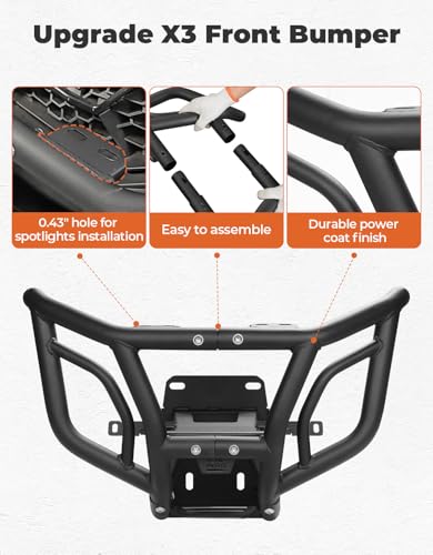 KEMIMOTO X3 Bumper Spotlight Ready Front Bumper Compatible with Can-Am Maverick X3/Max/TurboR/RR 2017-2024 OEM Replace #715002878 Heavy Duty Bumper