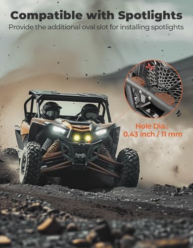 Compatible Spot Light: Unlike other front bumpers, KEMIMOTO’s bumper has an 11MM diameter oval adjustable hole in the upper center of the front bumper for additional spotlights (not included). This protects your safety without affecting the aesthetic coolness of your UTV! With the addition of lights at night, the value of your vehicle can be instantly increased