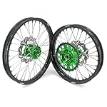 Fitment:21/19 MX Wheels Set For KX125 1993-2002 /KX250 1993-2002 .Please check the year and model of your bike that can fit for this set.(Come with Green Hubs,Black Rims,Green Nipples and Silver Spokes)