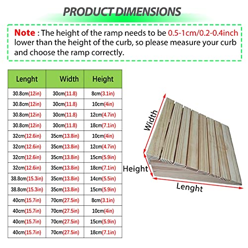 [HEAVY LOAD RESISTANCE & PORTABLE : Durable solid wood Ramp as a height support can avoid deformation and collapse caused by the use of threshold ramp. Holds up to 300kg/660lbs capacity. Portable and removable ramps can be placed wherever needed.