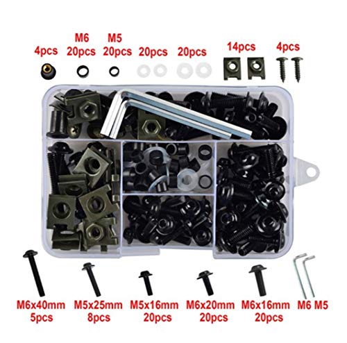 Amazon.com Price: $12.99 (as of 10/04/2024 16:58 PST- Details) BAIONE Fairing Bolt Kit 195PCS CNC Aluminium M5 M6 Motorcycle Windscreen Fairing Screws Fasteners Universal Compatible with Yamaha Honda Kawasaki Suzuki BMW Sportbike Bodywork Bolts