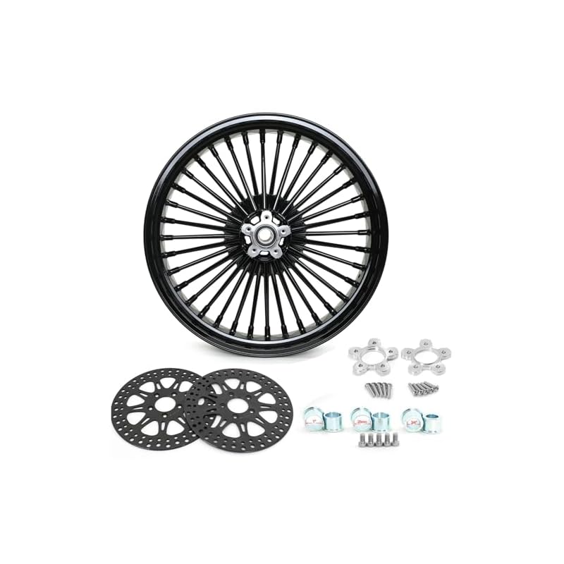 Smadmoto 21×3.5 Tubeless Front Wheel Rim 36 Fat Spoke for Harley Davidson 1984-2008 Touring Baggers Road King, Road Glide, Street Glide, Electra Glide With 11.5″ Black Front Brake Rotors