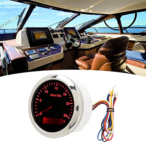 Tachometer Gauge, 85mm Tachometer 3000RPM Gauge with Hour Meter Red Backlight DC 9‑32V for Car RV Marine Boat Yacht