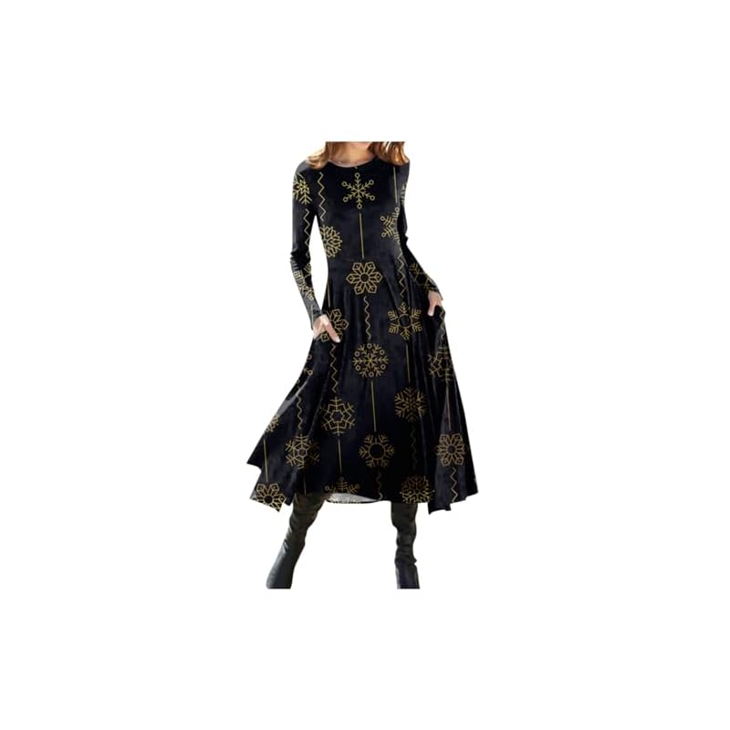 $14.39 – $15.59Price range: $14.39 through $15.59Women’s Christmas Dresses Fashion Casual Printed Round Neck Pullover Slim Fitting Long Sleeve Dress, S-3XL