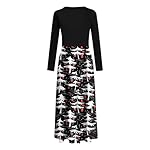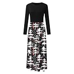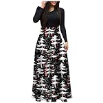 Women’s Christmas Party Dress Fashion Casual Print Round Neck Long Sleeves Oversized Maxi Dress, S-2XL