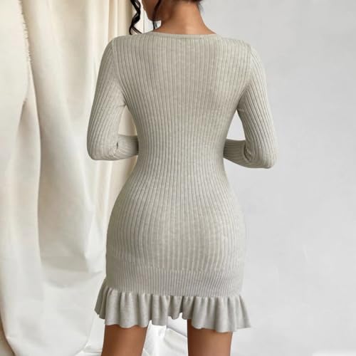 Women’s Wedding Guest Dresses Fashionable Casual V-Neck Solid Color Sweater Dress Loose Knitted Dress, S-2XL
