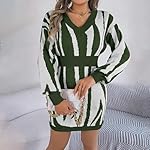 Women's White Dress Fashion Casual V-Neck Contrast Long Sleeve Waist Wrap Hip Sweater Dress, S-L $11.49 $13.29Price range: $11.49 through $13.29