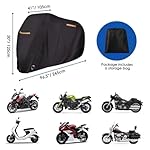 1.【Durable Material】Our motorcycle protector is made of nylon oxford material, which can offer protection to your motorcycle from any scratches. With PU and UV coating, it protects the motorcycle from dust, dirt, sunlight, rain, UV rays and pollutants.