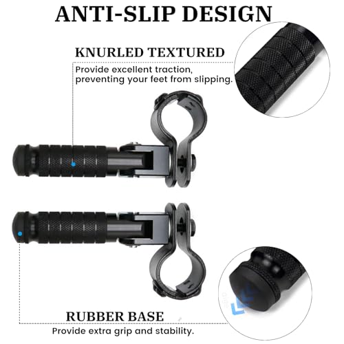 Anti-skid Design: These foot pegs are designed with extra deep knurled surface and anti-slip rubber base, providing excellent traction, extra grap and stability for added peace of mind